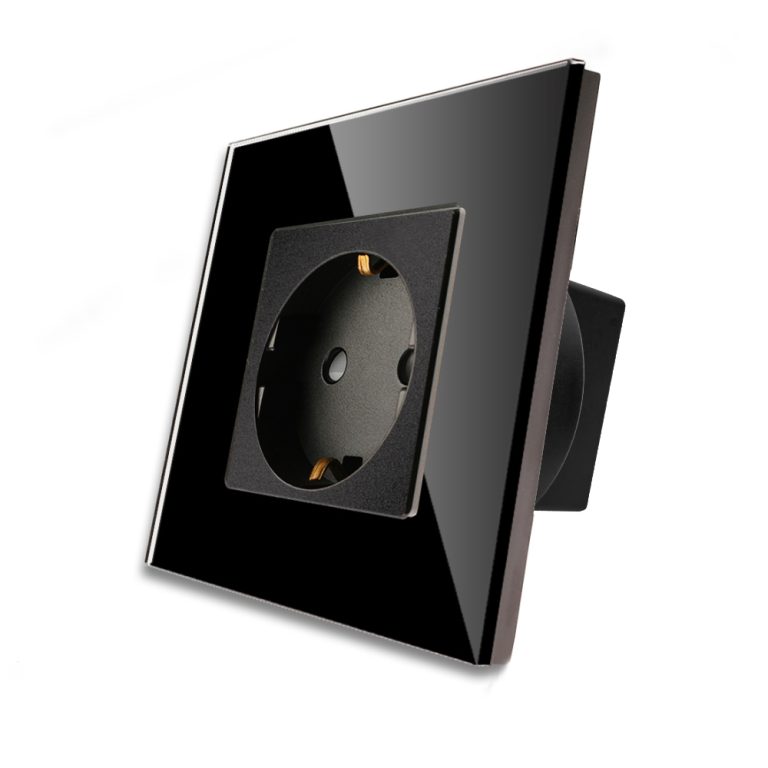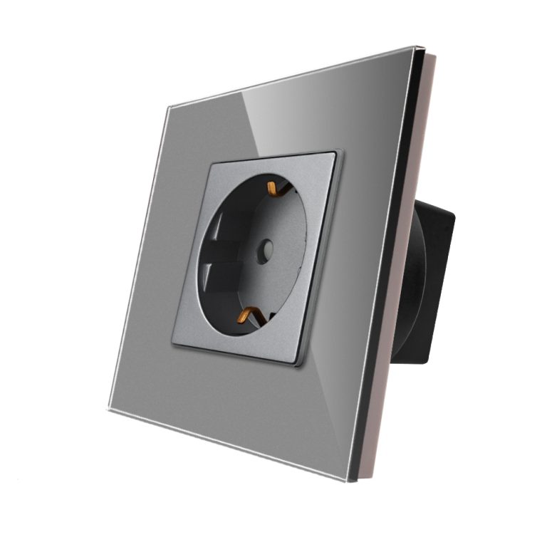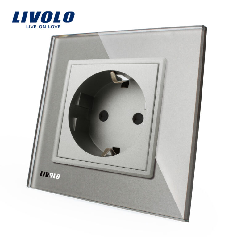 Priza simpla Livolo cu rama din sticla si capac de protectie rezistent la apa