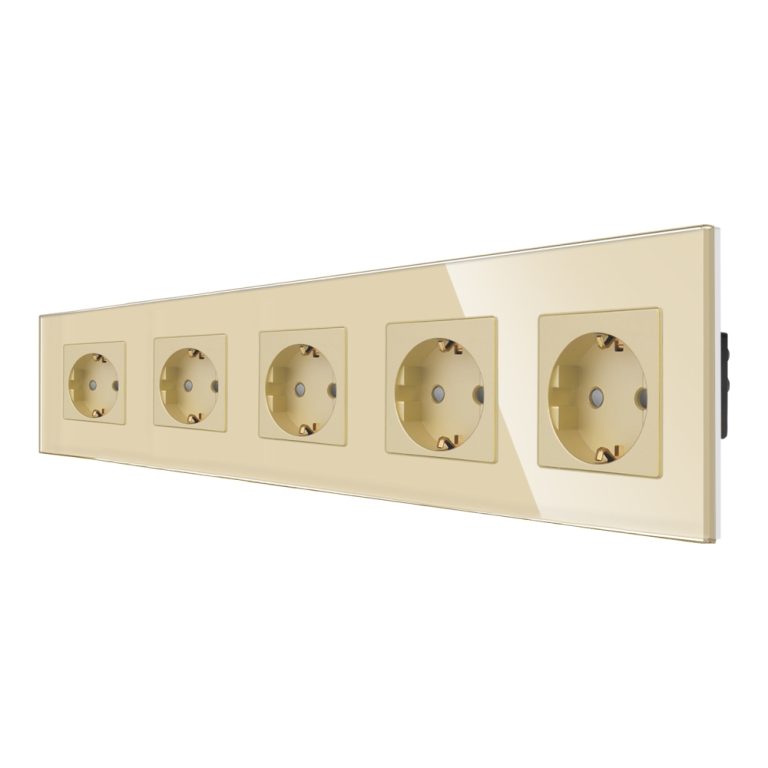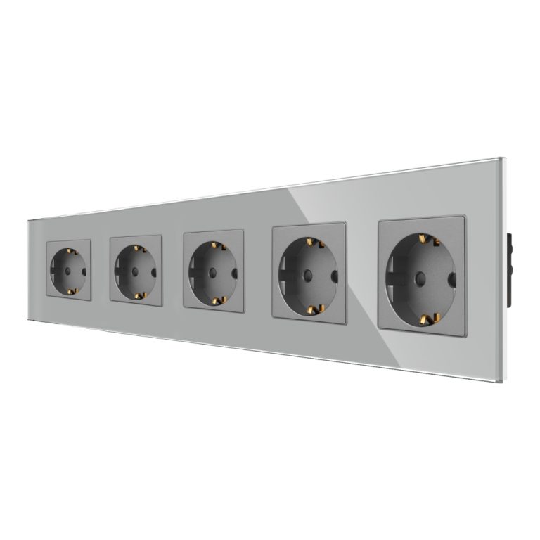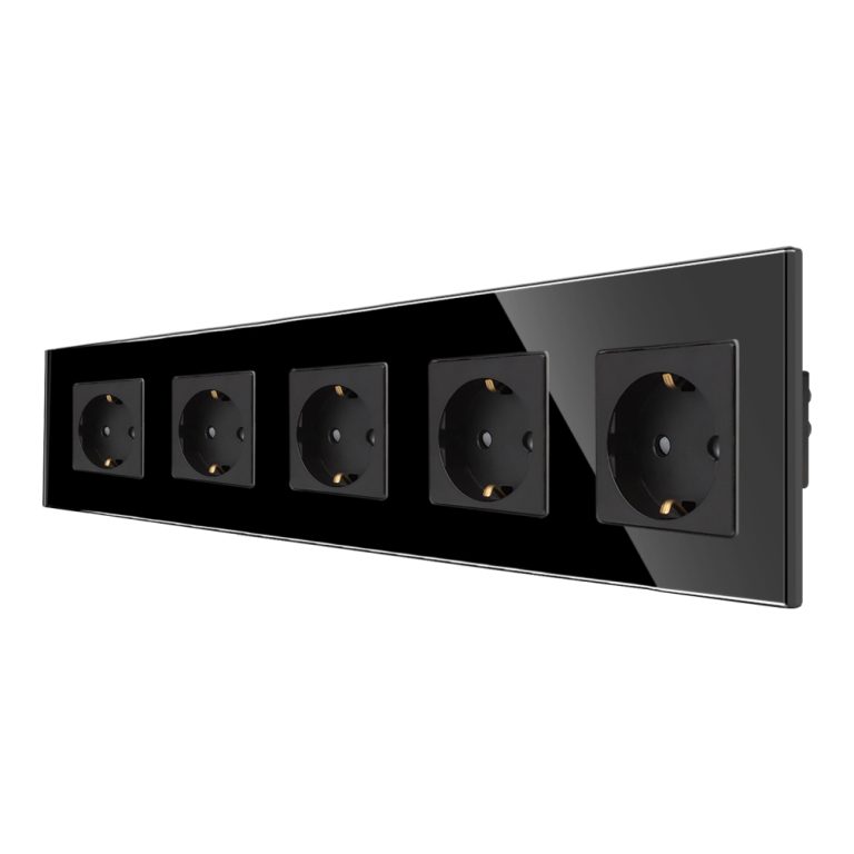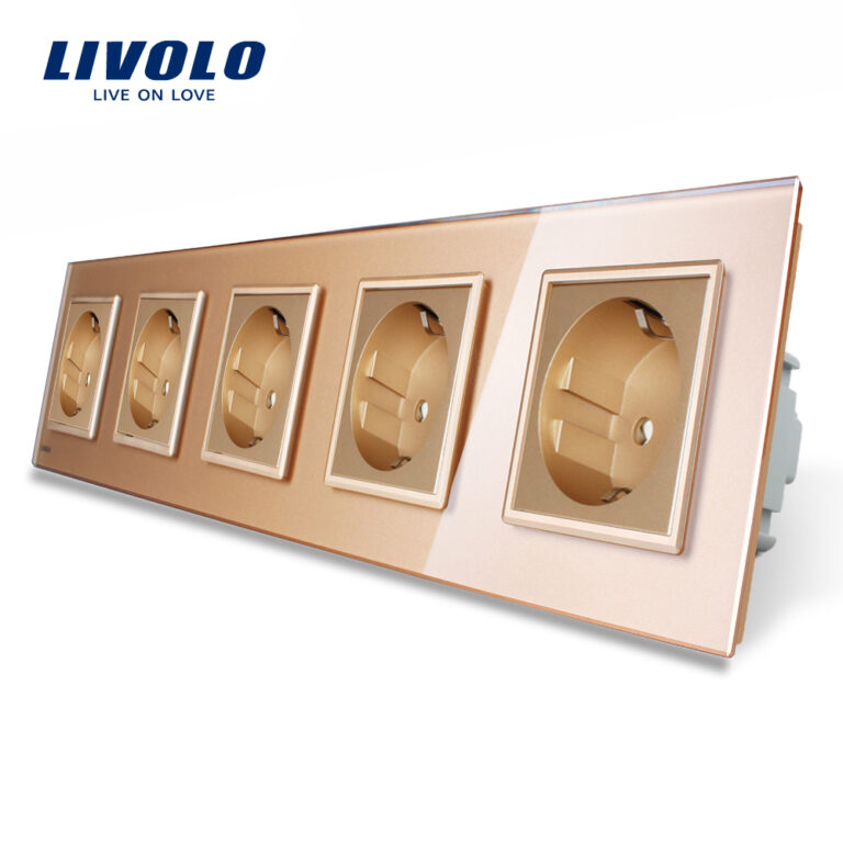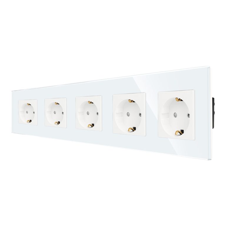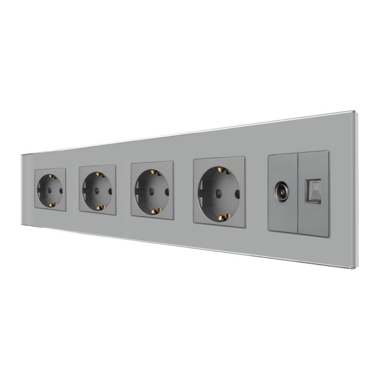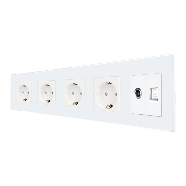 Priza cvintupla + priza TV Internet Livolo cu rama din sticla