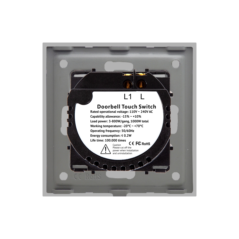 Buton Sonerie cu Touch, cu Revenire, din Sticla LUXION cu design-ul compact, elegant si minimalist. Produsele Luxion sunt versatile, iar senzorul tactil este foarte precis, identic cu cel al unui smartphone. Structura este durabila, iar intrerupatoarele nu se decoloreaza in timp. Este un produs practic, fabricat din materiale de calitate si rezistent in timp, ce ofera utilitate si confort casei tale.