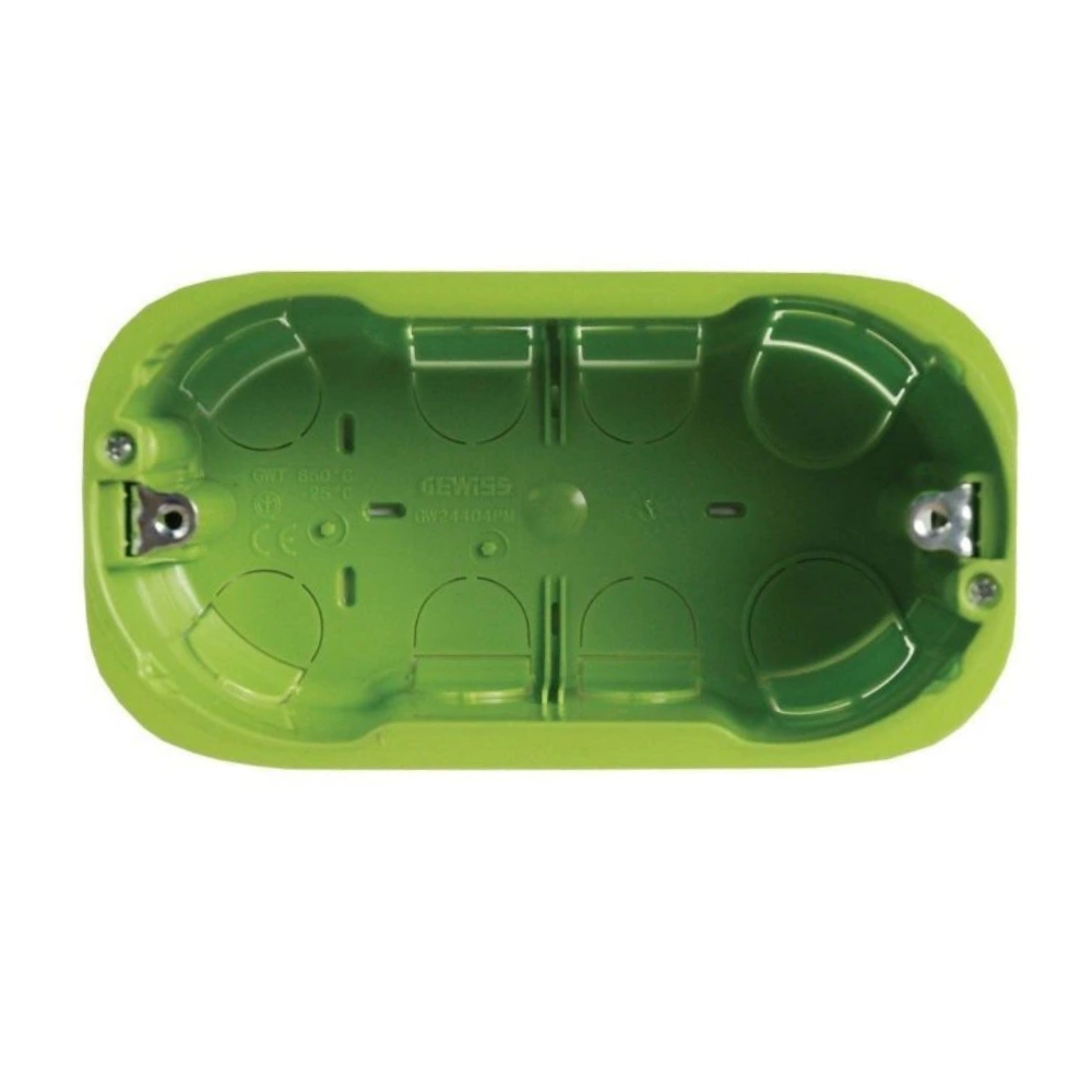 Doza de aparat GW 24404PM este realizata din masa plastica termorezistenta. Are forma dreptunghiulara, 4 module si are dimensiunile 133 x 73 x 50 mm. Este destinata montarii aparatajului standard italian pe pereti de gips carton. Produsul are grad de protectie IP20 – se va amplasa in interiorul locuintelor. Compatibila cu produsele Livolo – standard italian.