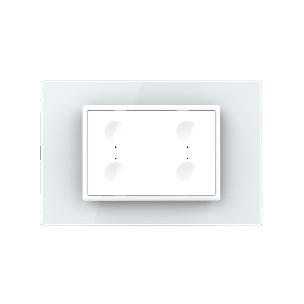 Intrerupator cvadruplu cap scara / cap cruce wireless cu touch Livolo cu rama din sticla, standard Italian, cu textura de crystal, indicator de lumina, rezistent la umiditate si la zgarieturi, rafinament la superlativ. Se pot conecta maxim 3 intrerupatoare in circuit (cap cruce) Poate fi actionat: – Direct de la intrerupator on/off prin atingere; – Din telecomanda Livolo, una din cele 2 modele: Telecomanda tip breloc Livolo Telecomanda cu Touch Screen Livolo din sticla (telecomenzile se achizitioneaza separat); – De pe smartphone cu ajutorul Hub-ului BroadLink RM4 PRO +Telecomanda Livolo prin aplicatia Ihc for Eu. – Vocal cu Google Home sau Amazon Alexa. Intermediar intre intrerupator si Google Home sau Amazon Alexa aveti nevoie de hub-ul BroadLink RM4 PRO.