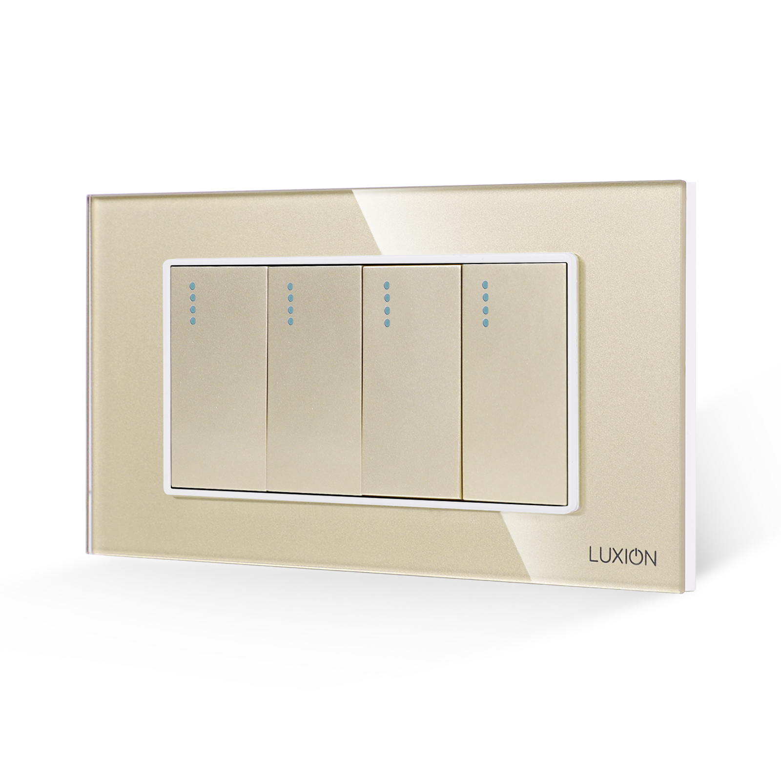 Intrerupator Cvadruplu Mecanic LUXION cu Rama din Sticla, Standard Italian, 4M