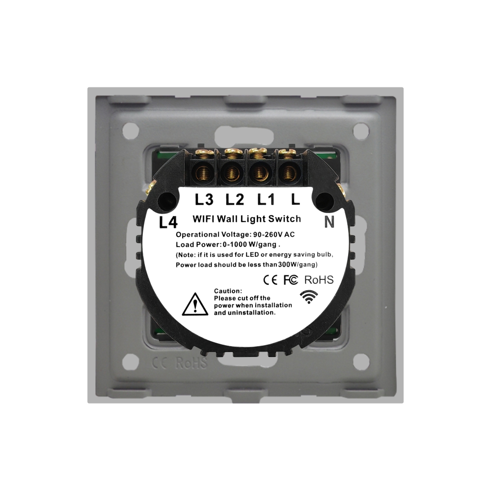 Intrerupator cvadruplu Wi-Fi + RF433 cu touch din sticla Luxion. Brand-ul de intrerupatoare LUXION se diferentiaza prin design-ul compact, elegant si minimalist. Sunt versatile, iar senzorul tactil este foarte precis, identic cu cel al unui smartphone. Structura este durabila, iar intrerupatoarele nu se decoloreaza in timp. Este un produs practic, fabricat din materiale de calitate si rezistent in timp, ce ofera utilitate si confort casei tale. Se poate monta pe instalatie cu nul sau se poate monta pe instalatie clasica insa doar alaturi de adaptorul Wifi Se poate controla cu ajutorul telecomenzii RF Luxion sau a telecomenzii tip breloc. Atentie, aceasta trebuie achizitionata separat!