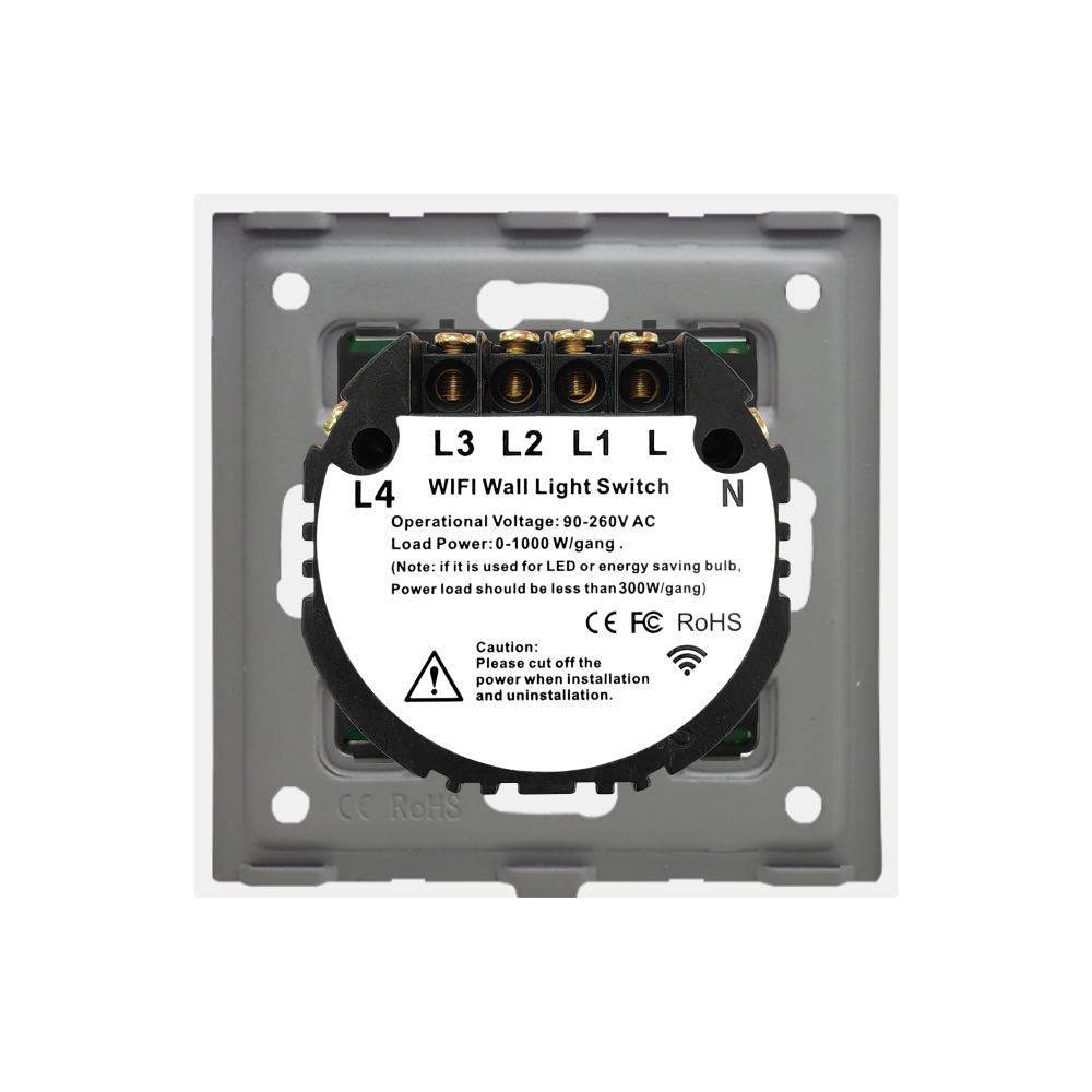 Intrerupator cvadruplu Wi-Fi + RF433 cu touch din sticla Luxion. Brand-ul de intrerupatoare LUXION se diferentiaza prin design-ul compact, elegant si minimalist. Sunt versatile, iar senzorul tactil este foarte precis, identic cu cel al unui smartphone. Structura este durabila, iar intrerupatoarele nu se decoloreaza in timp. Este un produs practic, fabricat din materiale de calitate si rezistent in timp, ce ofera utilitate si confort casei tale. Se poate monta pe instalatie cu nul sau se poate monta pe instalatie clasica insa doar alaturi de adaptorul Wifi Se poate controla cu ajutorul telecomenzii RF Luxion sau a telecomenzii tip breloc. Atentie, aceasta trebuie achizitionata separat!