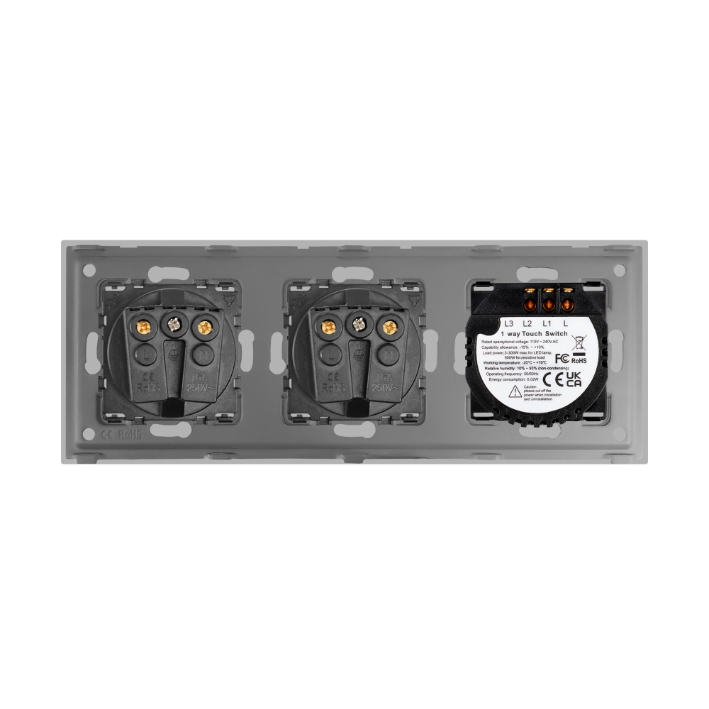 Intrerupator Dublu + 2 Prize cu Rama din Sticla LUXION