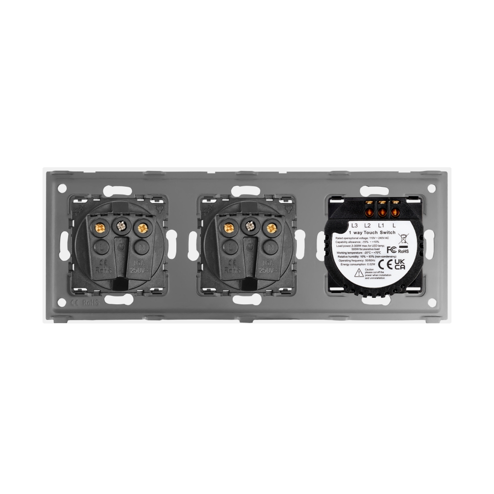 Intrerupator Dublu + 2 Prize cu Rama din Sticla LUXION
