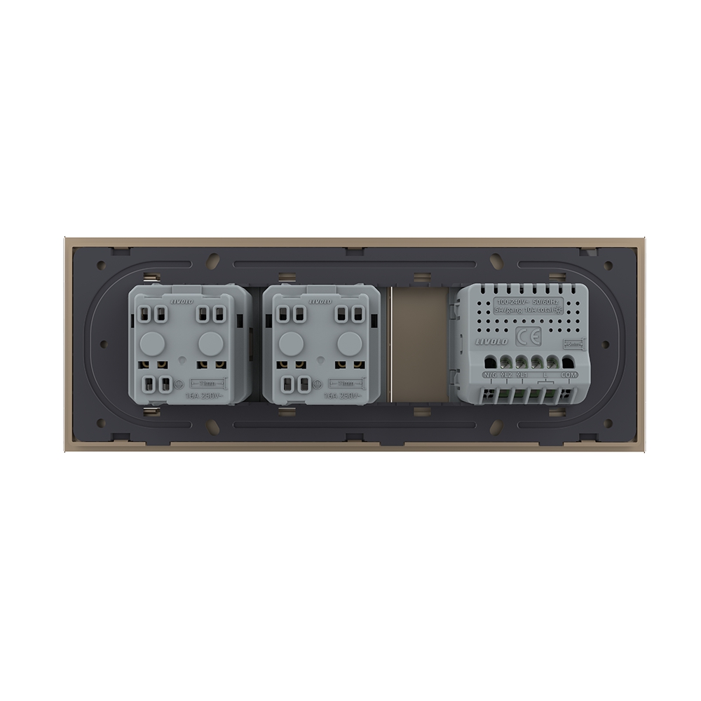 Intrerupator dublu + doua prize Livolo din sticla, standard italian, cu 6 module, din sticla crystal securizata, termorezistenta, compatibil doar cu modulele Livolo. Este rezistent la zgarieturi, umezeala, praf si ofera casei tale un plus de eleganta si rafinament.