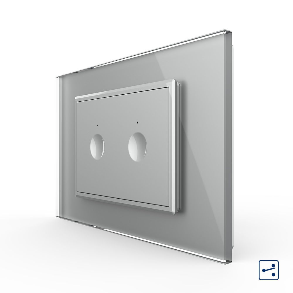 Intrerupator dublu cap scara / cap cruce cu touch Livolo cu rama din sticla, standard Italian – Serie noua