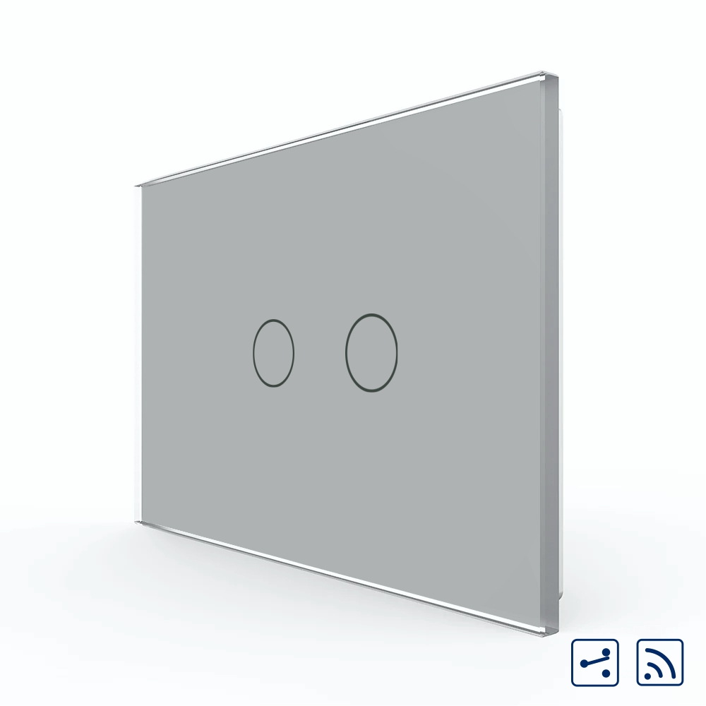 Intrerupator dublu cap scara / cruce wireless cu touch Livolo din sticla crystal, rezistent la zgarieturi, umezeala, praf ofera casei tale un plus de rafinament si confort. Compatibil cu telecomanda wireless, controleaza intrerupatorul de oriunde te-ai afla. Poate fi actionat: – Direct de la intrerupator on/off prin atingere; – Din telecomanda Livolo, una din cele 2 modele: – Telecomanda tip breloc Livolo – Telecomanda cu Touch Screen Livolo din sticla (telecomenzile se achizitioneaza separat); – De pe smartphone cu ajutorul Hub-ului BroadLink RM4 PRO +Telecomanda Livolo prin aplicatia Ihc for Eu. – Vocal cu Google Home sau Amazon Alexa. Intermediar intre intrerupator si Google Home sau Amazon Alexa aveti nevoie de hub-ul BroadLink RM4 PRO.