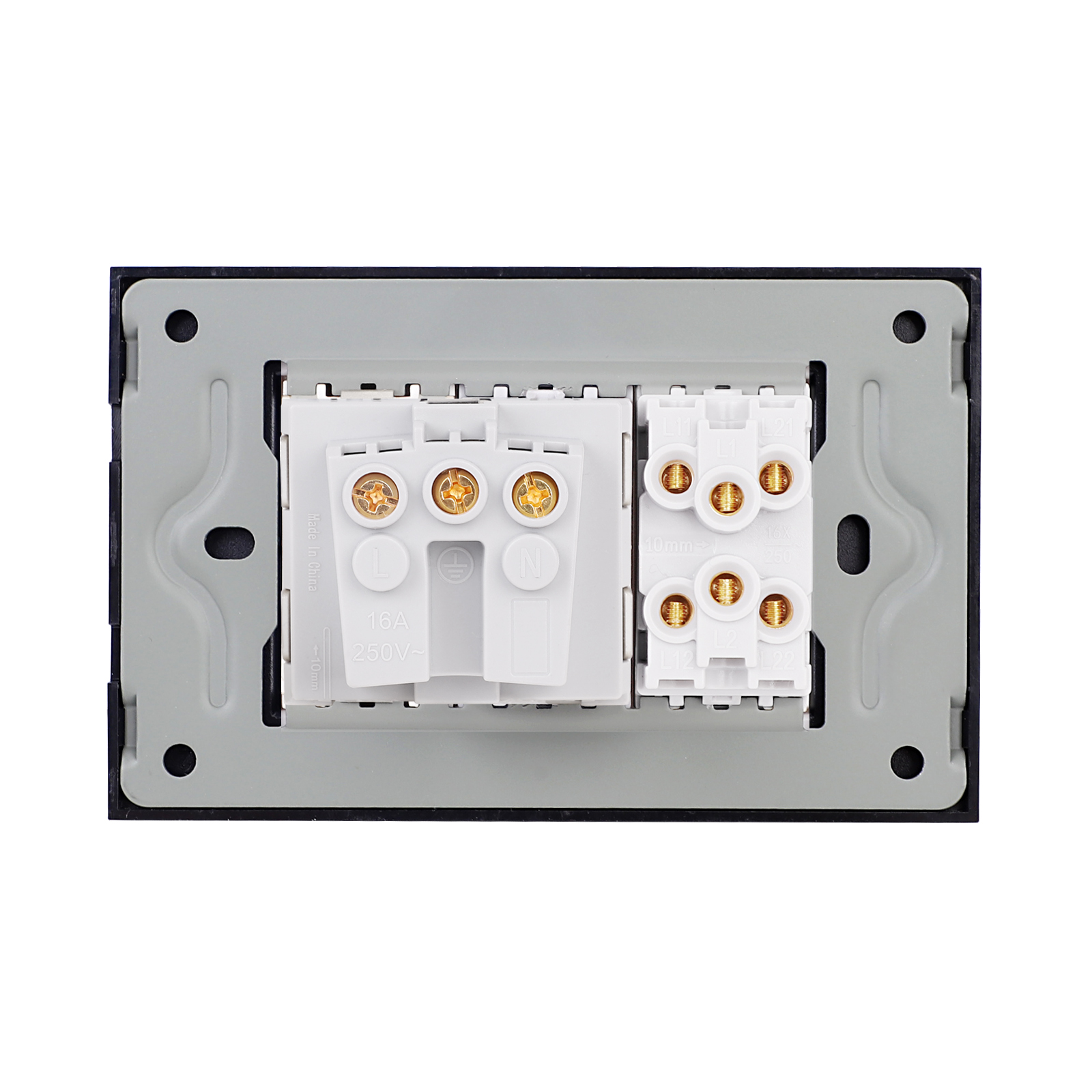 Intrerupator dublu cap scara + priza cu rama din sticla LUXION, standard Italian, 3M – solutia ideala pentru casa sau spatiul tau. Bucura-te de un design rafinat si functional, cu atentie la detalii. LUXION se integreaza perfect in orice mediu. Astfel poate fi montat nu doar in casa, ci si in spatii precum: birouri si spatii comerciale, spatii HoReCa, showroom-uri si sali de prezentare, depozite si spatii industriale moderne, cladiri rezidentiale sau de birouri. Intrerupatoarele 3M sunt compatibile cu Doza Rigips 3M si Doza Incastrata 3M.
