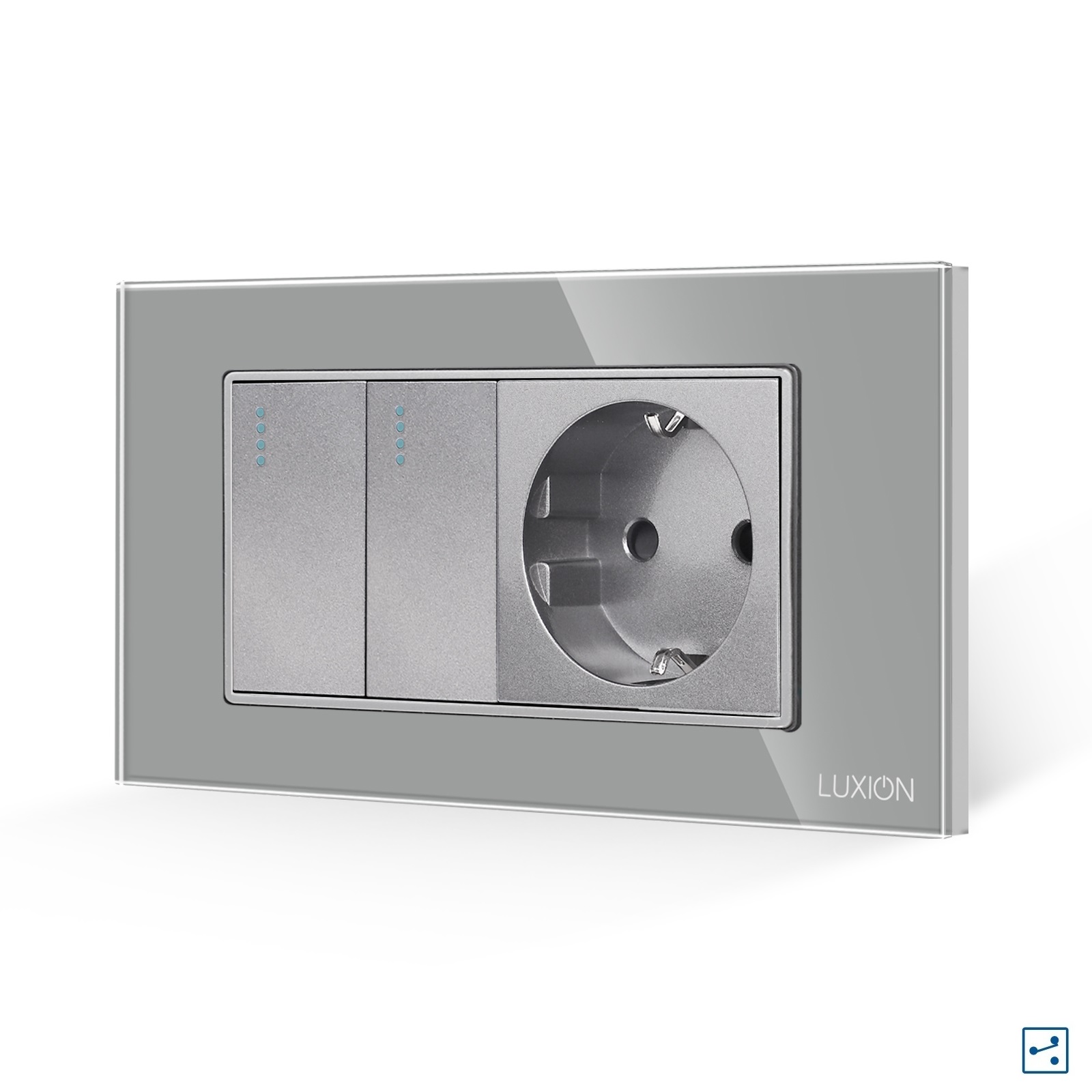 Intrerupator Dublu Cap Scara + Priza cu Rama din Sticla LUXION, Standard Italian, 4M