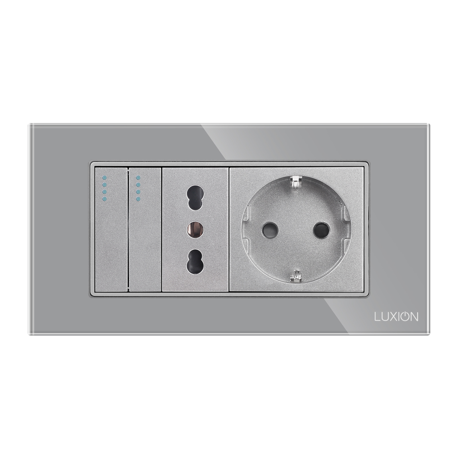 Intrerupator dublu cap scara + priza ingusta + priza schuko cu rama din sticla Luxion, standard Italian, 4M – solutia ideala pentru casa sau spatiul tau. Bucura-te de un design rafinat si functional, cu atentie la detalii. LUXION se integreaza perfect in orice mediu. Astfel poate fi montat nu doar in casa, ci si in spatii precum: birouri si spatii comerciale, spatii HoReCa, showroom-uri si sali de prezentare, depozite si spatii industriale moderne, cladiri rezidentiale sau de birouri.