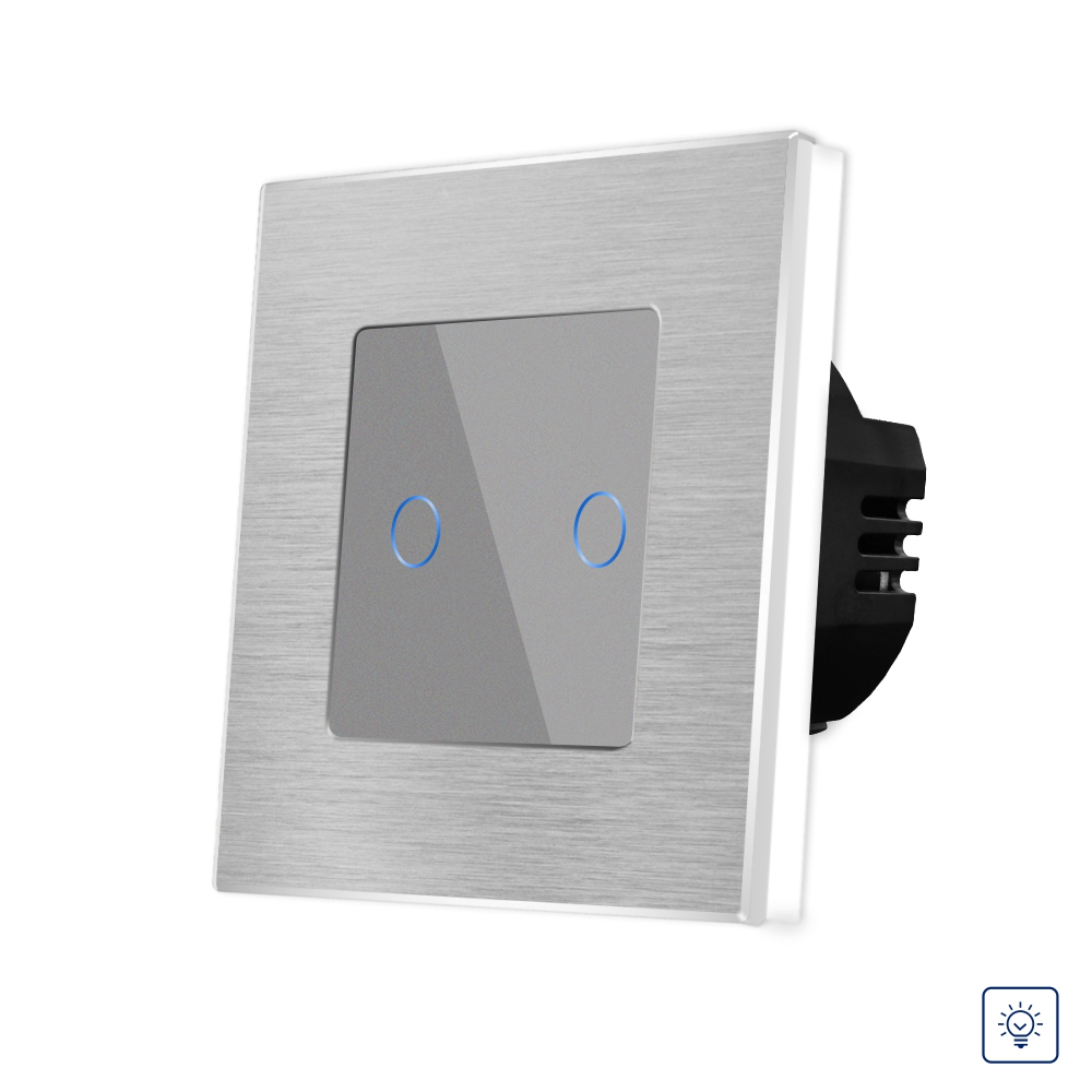 Intrerupator Dublu cu Variator si Touch din Sticla si Rama de Aluminiu LUXION