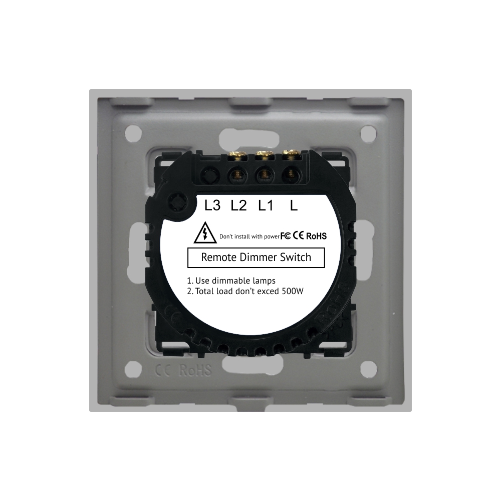 Intrerupator Dublu cu Variator si Touch din Sticla si Rama de Aluminiu LUXION, RF433