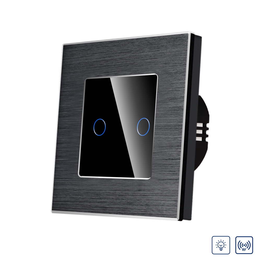 Intrerupator Dublu cu Variator si Touch din Sticla si Rama de Aluminiu LUXION, RF433