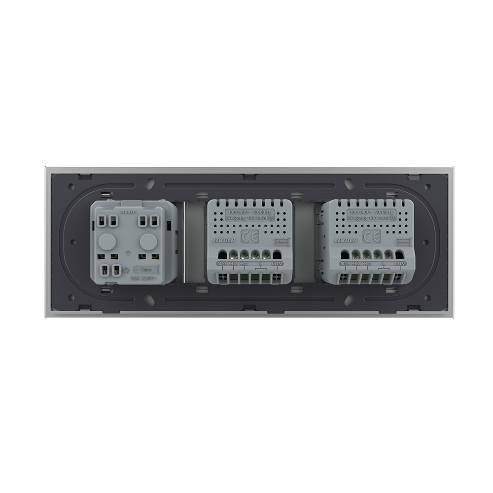 Intrerupator Dublu + Dublu + Priza LIVOLO cu Rama Din Sticla, Standard Italian, 6M