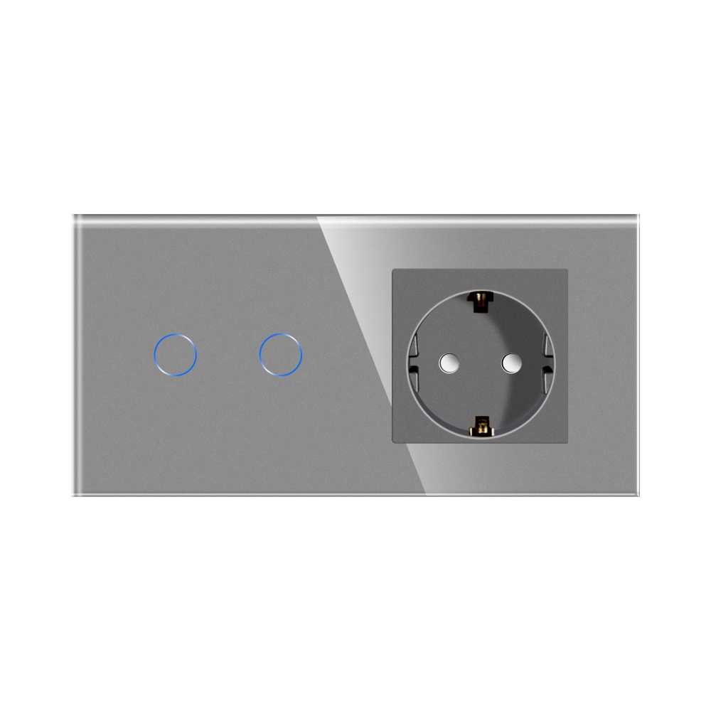 Intrerupator Dublu + Priza cu Rama din Sticla LUXION