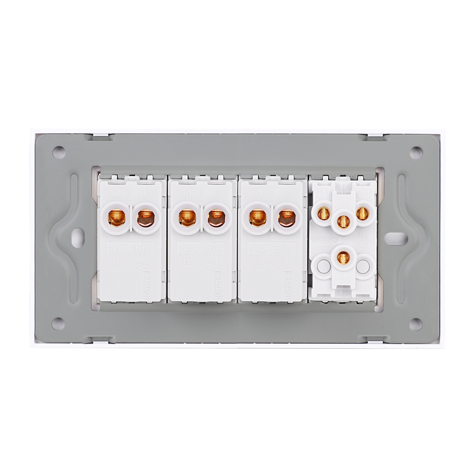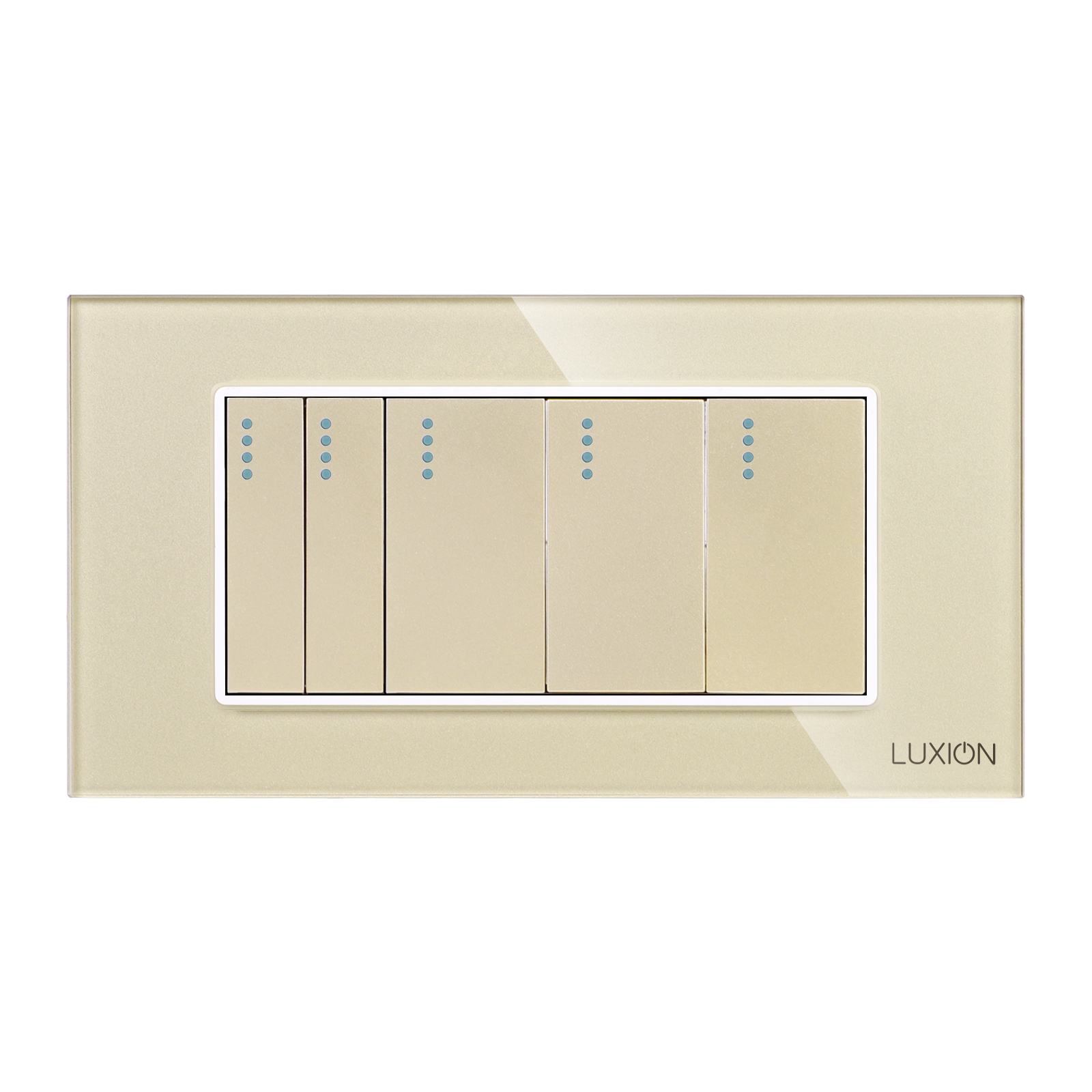 Intrerupator mecanic 5 posturi cu rama din sticla Luxion, standard Italian, 4M – solutia ideala pentru casa sau spatiul tau. Bucura-te de un design rafinat si functional, cu atentie la detalii. LUXION se integreaza perfect in orice mediu. Astfel poate fi montat nu doar in casa, ci si in spatii precum: birouri si spatii comerciale, spatii HoReCa, showroom-uri si sali de prezentare, depozite si spatii industriale moderne, cladiri rezidentiale sau de birouri. Intrerupatoarele 4M sunt compatibile cu Doza Rigips 4M si Doza Incastrata 4M.