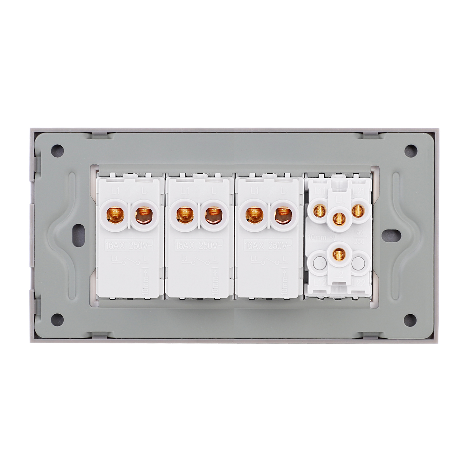 Intrerupator mecanic 5 posturi cu rama din sticla Luxion, standard Italian, 4M – solutia ideala pentru casa sau spatiul tau. Bucura-te de un design rafinat si functional, cu atentie la detalii. LUXION se integreaza perfect in orice mediu. Astfel poate fi montat nu doar in casa, ci si in spatii precum: birouri si spatii comerciale, spatii HoReCa, showroom-uri si sali de prezentare, depozite si spatii industriale moderne, cladiri rezidentiale sau de birouri. Intrerupatoarele 4M sunt compatibile cu Doza Rigips 4M si Doza Incastrata 4M.