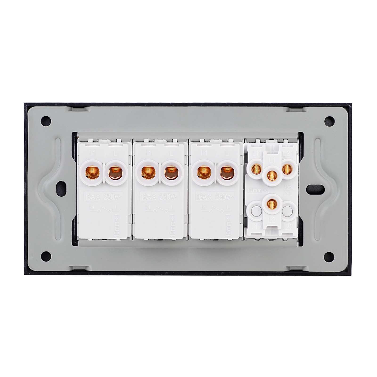 Intrerupator mecanic 5 posturi cu rama din sticla Luxion, standard Italian, 4M – solutia ideala pentru casa sau spatiul tau. Bucura-te de un design rafinat si functional, cu atentie la detalii. LUXION se integreaza perfect in orice mediu. Astfel poate fi montat nu doar in casa, ci si in spatii precum: birouri si spatii comerciale, spatii HoReCa, showroom-uri si sali de prezentare, depozite si spatii industriale moderne, cladiri rezidentiale sau de birouri. Intrerupatoarele 4M sunt compatibile cu Doza Rigips 4M si Doza Incastrata 4M.