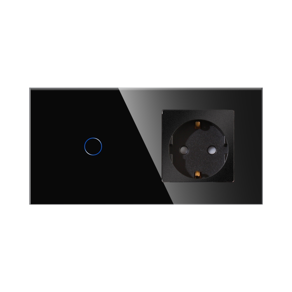 Intrerupator simplu cap scara / cruce + priza cu rama din sticla LUXION, serie A, cu design compact, elegant si minimalist. Structura este durabila, iar produsele nu se decoloreaza in timp. Este un produs practic, fabricat din materiale de calitate si rezistente in timp, ce ofera utilitate si confort casei tale.