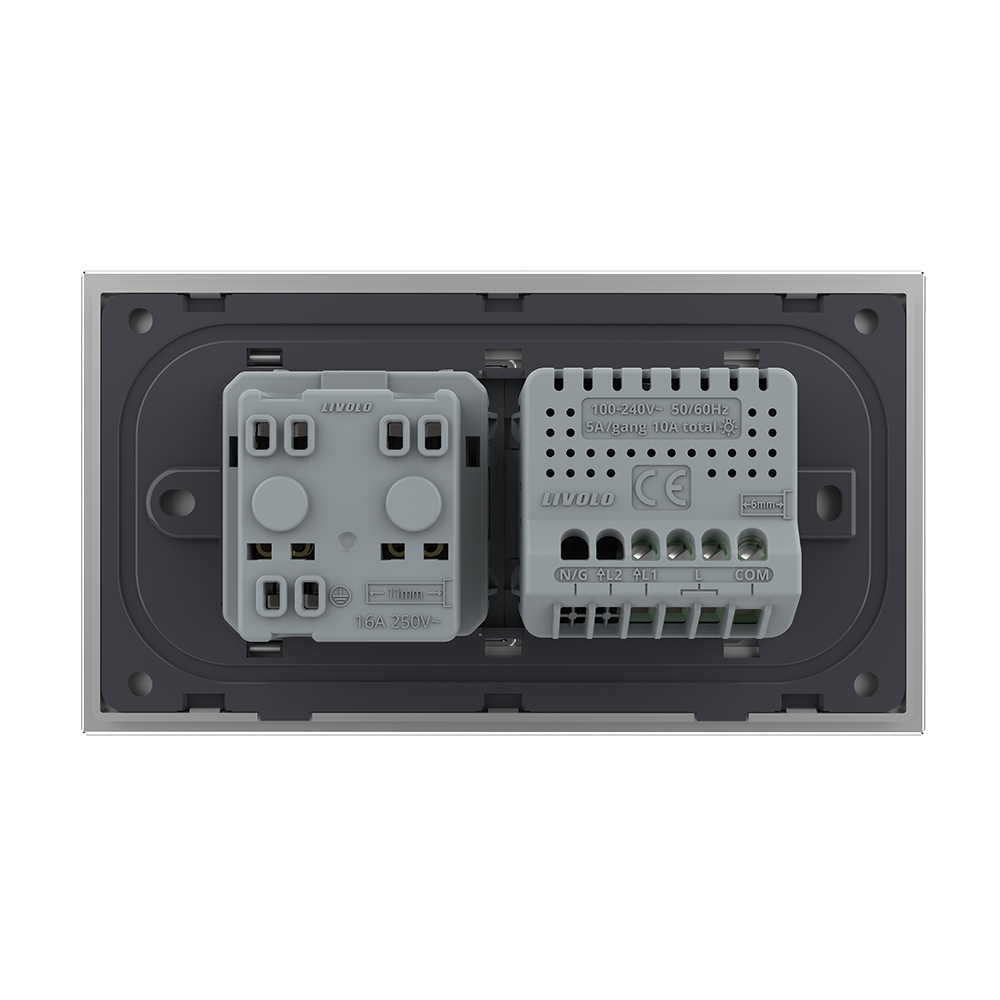 Intrerupator simplu cap scara / cruce + priza Livolo din sticla, standard italian, cu 4 module, din sticla crystal securizata, termorezistenta, compatibil doar cu modulele Livolo. Este rezistent la zgarieturi, umezeala, praf si ofera casei tale un plus de eleganta si rafinament. Compatibil cu doza modulara de 4 module cu distanta dintre suruburi 108 mm.