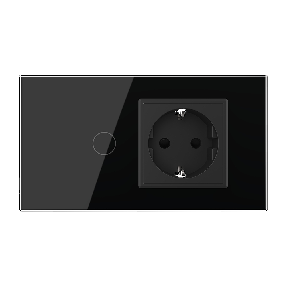 Intrerupator Simplu Cap Scara / Cruce + Priza LIVOLO cu Rama Din Sticla, Standard Italian, 4M