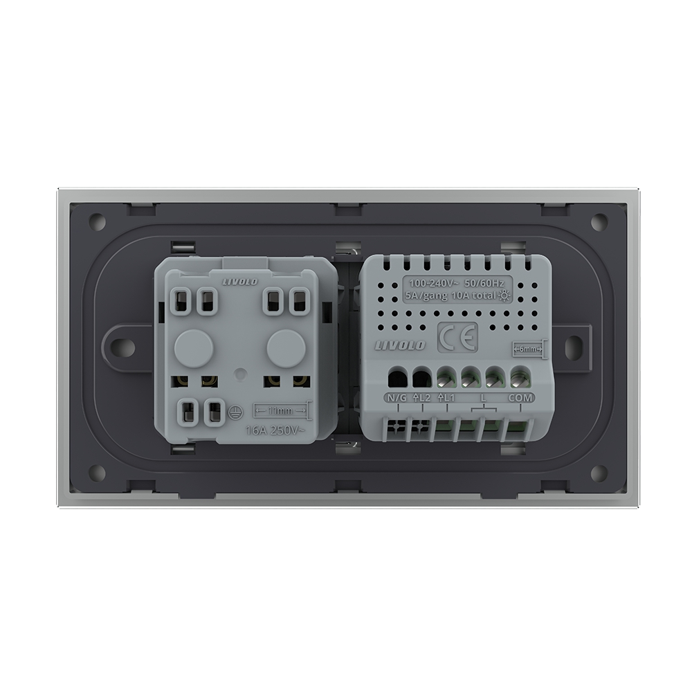 Intrerupator Simplu Cap Scara / Cruce + Priza LIVOLO cu Rama Din Sticla, Standard Italian, 4M