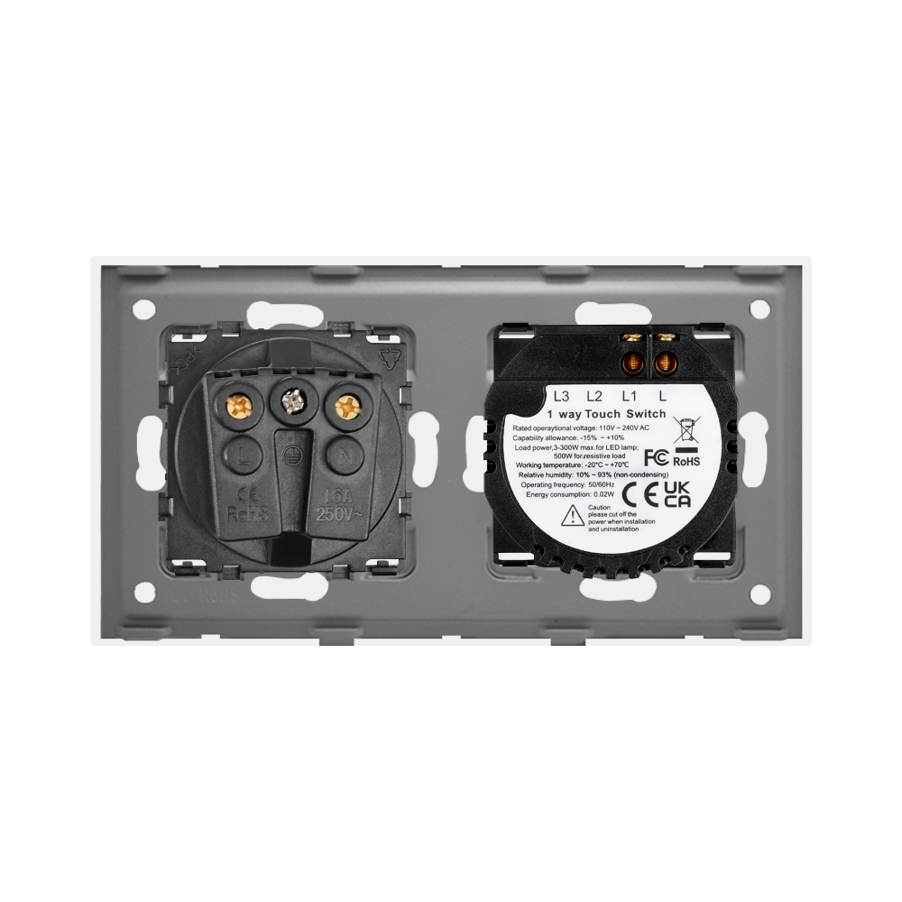 Intrerupator Simplu + Priza cu Rama din Sticla LUXION