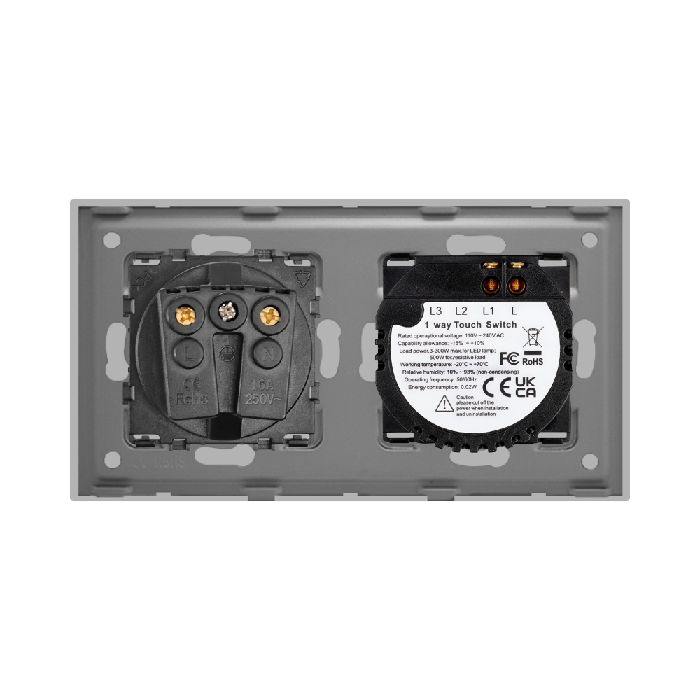 Intrerupator Simplu + Priza cu Rama din Sticla LUXION