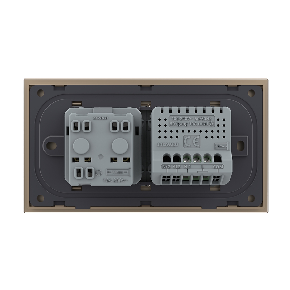 Intrerupator Simplu + Priza LIVOLO cu Rama Din Sticla, Standard Italian, 4M