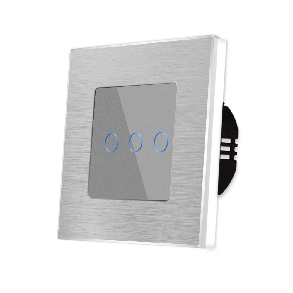 Intrerupator Triplu cu Touch din Sticla si Rama de Aluminiu LUXION, 500W
