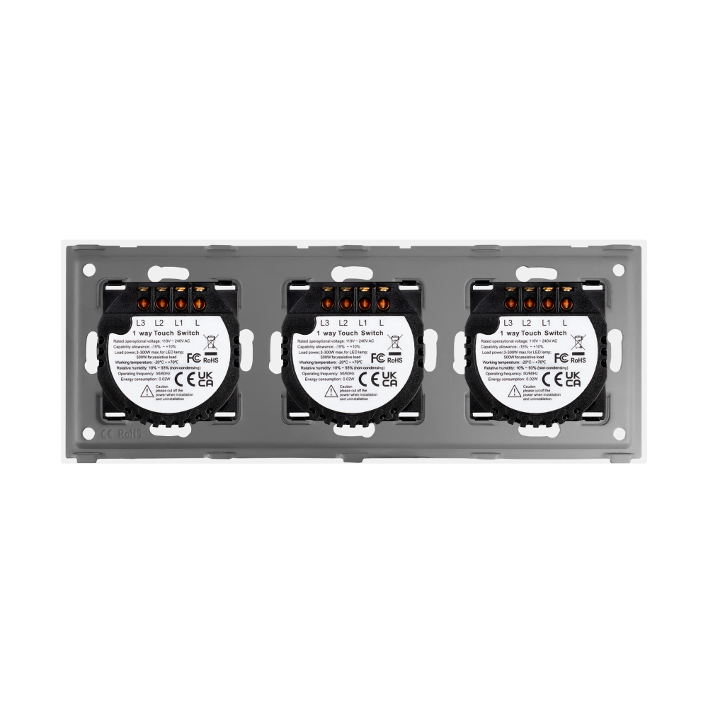 Intrerupator triplu cu touch din sticla Luxion. Brand-ul de intrerupatoare LUXION se diferentiaza prin design-ul compact, elegant si minimalist. Sunt versatile, iar senzorul tactil este foarte precis, identic cu cel al unui smartphone. Structura este durabila, iar intrerupatoarele nu se decoloreaza in timp. Este un produs practic, fabricat din materiale de calitate si rezistent in timp, ce ofera utilitate si confort casei tale.