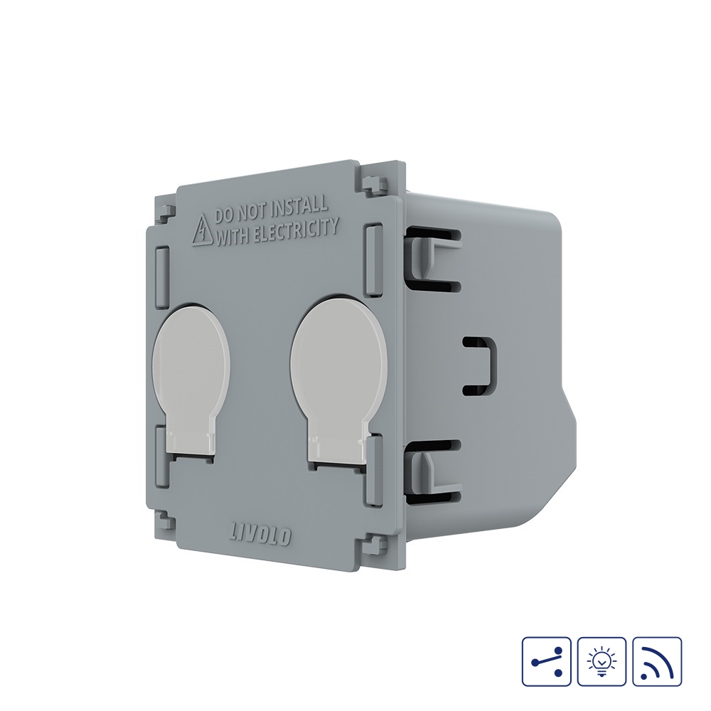 Modulul intrerupator dublu cap scara / cruce cu variator, wireless si touch LIVOLO din seria noua este un produs imbunatatit si inovator ce vine ca rezultat al tehnologiei dezvoltate in ani de studii si cercetari. Este un produs practic, fabricat din materiale de calitate si rezistent in timp, ce ofera utilitate si confort casei tale. Se monteaza in doza rotunda sau patrata cu distanta dintre suruburi 60mm. Se pot conecta maxim 3 intrerupatoare in circuit (cap cruce) Imbunatatiri fata de seria veche: → Compatibilitate cu mai multe tipuri de becuri → Timp de raspuns mai rapid la actionarea touch-ului → Chip mai puternic si robust – fabricat in Japonia → Consum de energie redus in stand-by → Design compact ( dimensiuni reduse fata de modelul anterior ) → Tensiune maxima suportata de 2A / circuit Poate fi actionat: – Direct de la intrerupator on/off prin atingere; – Din telecomanda Livolo, una din cele 2 modele: Telecomanda tip breloc Livolo Telecomanda cu Touch Screen Livolo din sticla (telecomenzile se achizitioneaza separat); – De pe smartphone cu ajutorul Hub-ului BroadLink RM PRO Plus prin aplicatia Ihc for Eu sau cu ajutorul Hub-ului Allone Pro Orvibo prin aplicatia HomeMate (hub-urile se achizitioneaza separat); – Vocal cu Google Home sau Amazon Alexa. Intermediar intre intrerupator si Google Home sau Amazon Alexa aveti nevoie de unul din cele 2 modele de hub: BroadLink RM PRO Plus sau Allone Pro Orvibo.