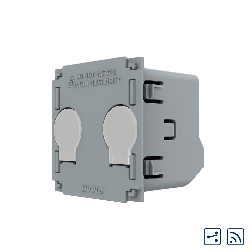 Modul intrerupator dublu cap scara / cruce wireless cu touch LIVOLO din seria noua este un produs imbunatatit si inovator ce vine ca rezultat al tehnologiei dezvoltate in ani de studii si cercetari. Este un produs practic, fabricat din materiale de calitate si rezistent in timp, ce ofera utilitate si confort casei tale. Se monteaza in doza rotunda sau patrata cu distanta dintre suruburi 60mm. Se pot conecta maxim 3 intrerupatoare in circuit (cap cruce) Imbunatatiri fata de seria veche: → Compatibilitate cu mai multe tipuri de becuri → Timp de raspuns mai rapid la actionarea touch-ului → Chip mai puternic si robust – fabricat in Japonia → Consum de energie redus in stand-by → Design compact ( dimensiuni reduse fata de modelul anterior ) → Tensiune maxima suportata de 5A / circuit