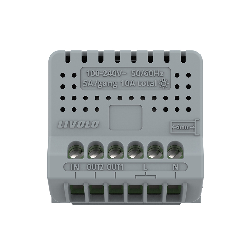 Modul intrerupator Livolo dublu cu revenire (reset) si contact uscat, produs imbunatatit si inovator din seria noua ce vine ca rezultat al tehnologiei dezvoltate in ani de studii si cercetari. Este un produs practic, fabricat din materiale de calitate si rezistent in timp, ce ofera utilitate si confort casei tale. Intrerupatoarele Livolo cu contacte fara potential (dry contact/ contact uscat) nu actioneaza direct o sursa de iluminat, ele reprezinta doar un buton de actionare pentru modulul care controleaza direct sursa de iluminat. De exemplu: relee Shelly, Sonoff, etc. Acest tip de intrerupator Livolo se alimenteaza la Faza si Nul si este un intrerupator tip buton cu revenire. Necesita nul obligatoriu in doza de aparat!