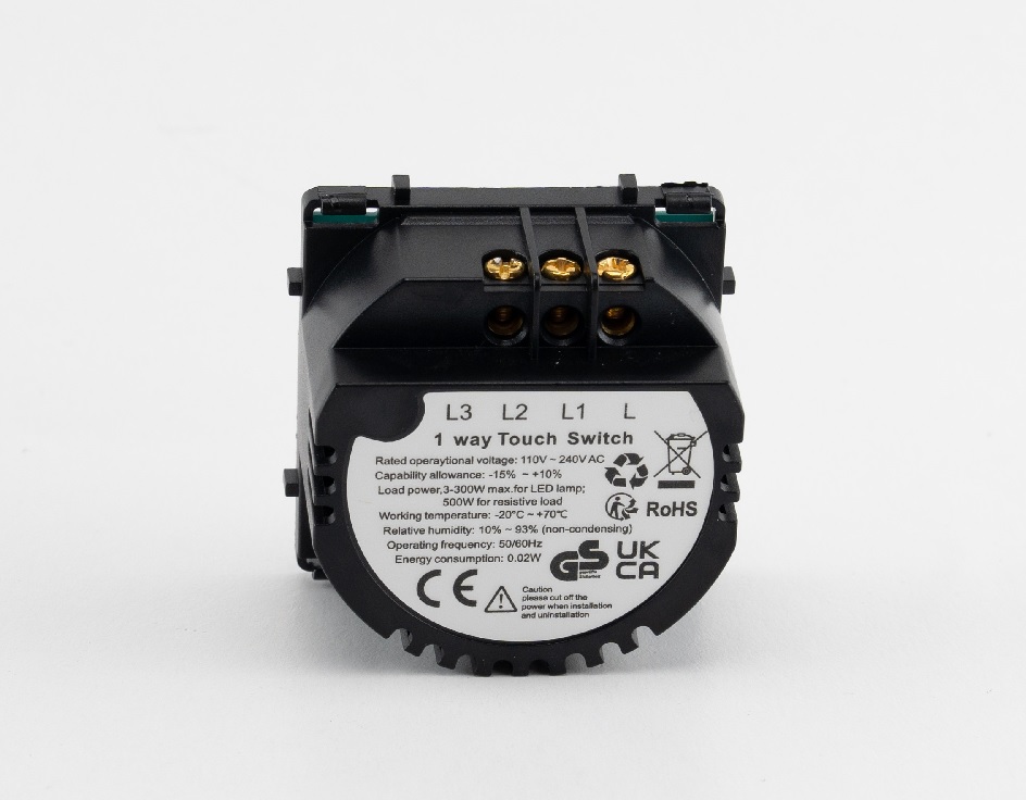 Modulul de intrerupator dublu cu touch Luxion. Produsul se poate monta singur pe un panou Luxion sau impreuna cu alte prize si intrerupatoare Luxion pe o rama din sticla Luxion. Compatibil doar cu ramele si panourile din sticla LUXION.
