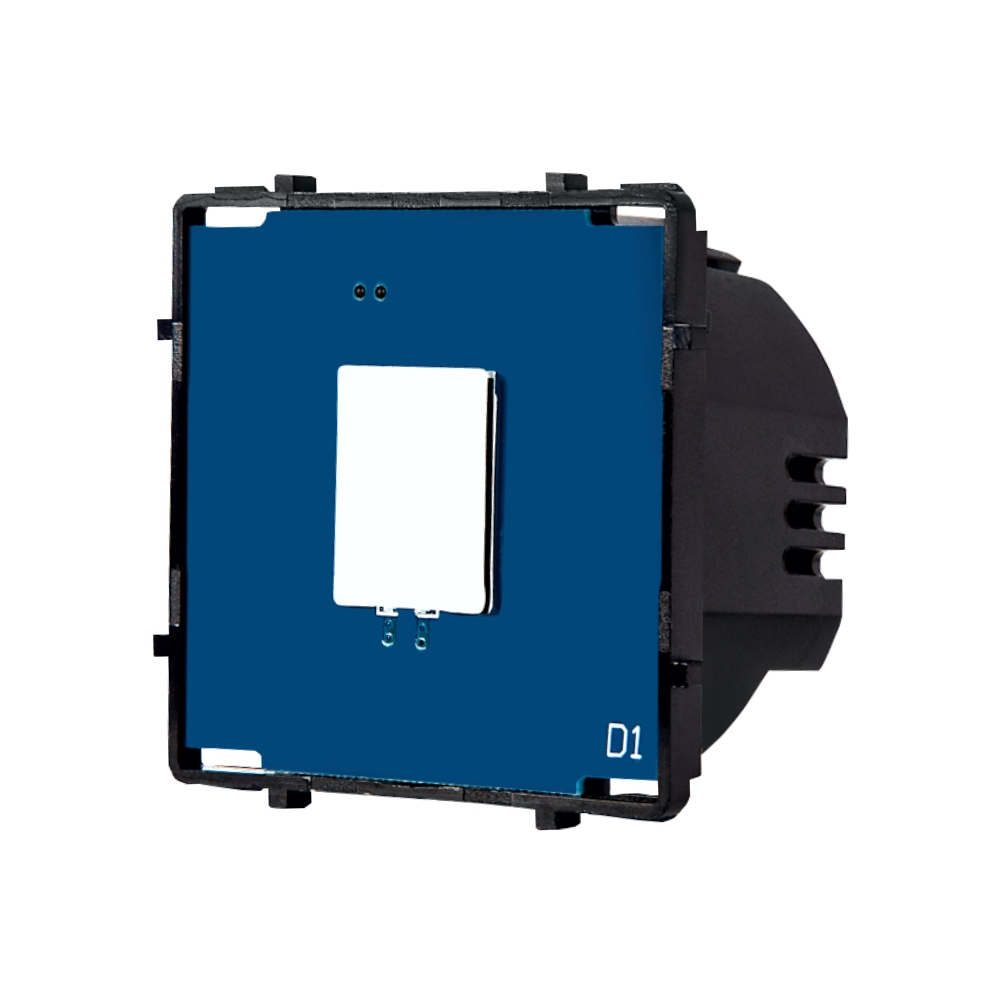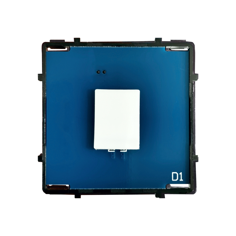 Modulul de intrerupator simplu cu touch Luxion. Produsul se poate monta singur pe un panou Luxion sau impreuna cu alte prize si intrerupatoare Luxion pe o rama din sticla Luxion. Compatibil doar cu ramele si panourile din sticla LUXION.