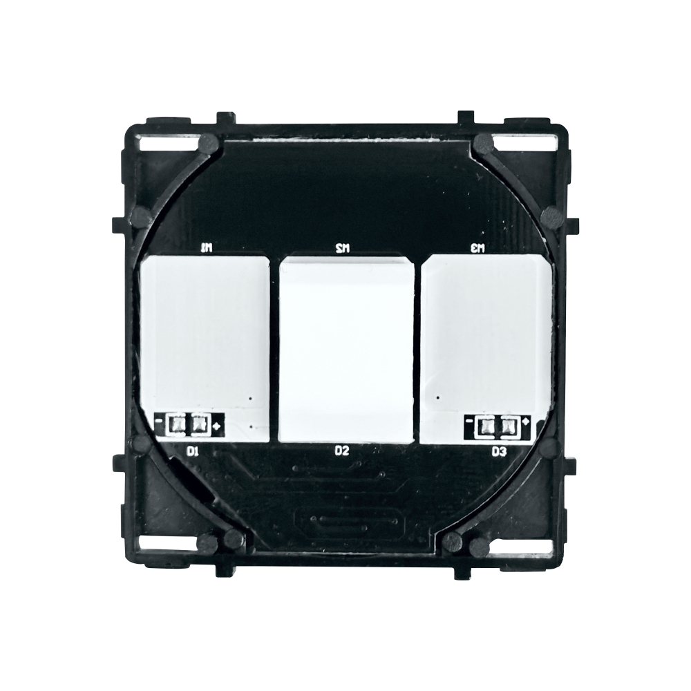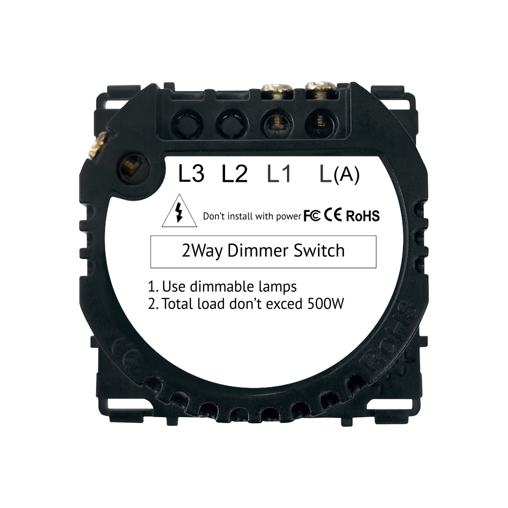 Modulul intrerupator simplu variator, cap scara cu touch Luxion. Produsul se poate monta singur pe un panou Luxion sau impreuna cu alte prize si intrerupatoare Luxion pe o rama din sticla Luxion. Compatibil doar cu ramele si panourile din sticla LUXION. Se pot conecta maxim 3 intrerupatoare in circuit (cap cruce)