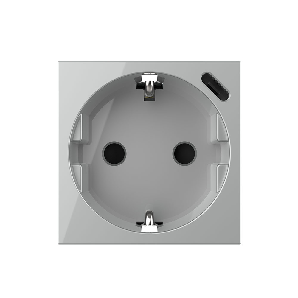 Modul priza schuko + USB C, standard german LIVOLO cu rama din sticla. Produsul este ideal pentru case, birouri, spatii comerciale, hoteluri. Se monteaza in doza cu distanta intre suruburi de 60 mm.