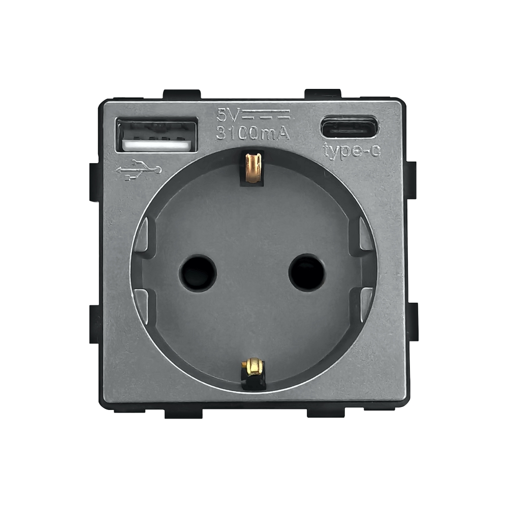 Modul Priza Simpla + USB-A + USB-C LUXION