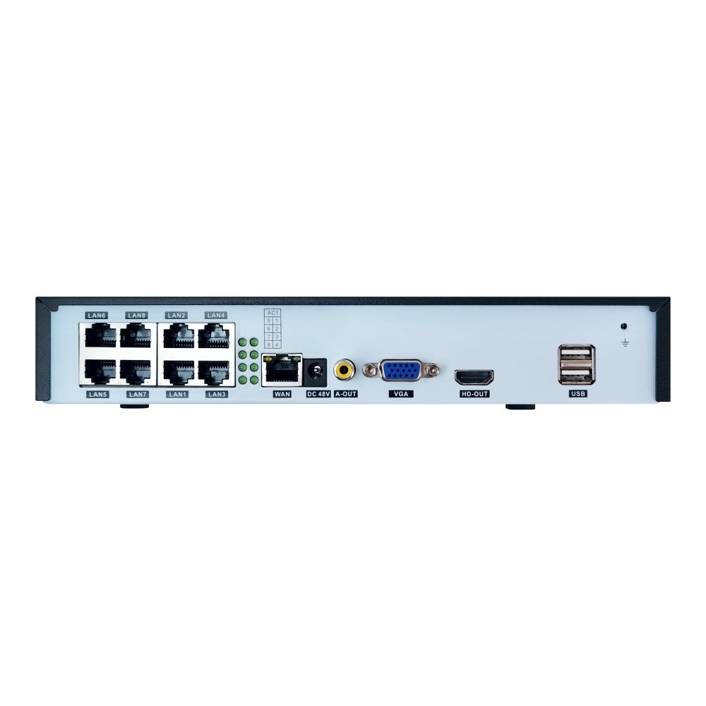 Noul NVR BS-N08PT cu 8 canale iti ofera posibilitatea de a urmari locuinta personala, spatiul comercial de la distanta prin intermediul unui smartphone, tableta sau laptop. Compresia H.265 reduce semnificativ dimensiunea inregistrarilor, fara a compromite calitatea imaginii. Este o tehnologie stabila de compresie ce ofera o calitate a inregistrarii superioara, fara a compromite calitatea imaginii si economiseste spatiul de stocare pe HDD.