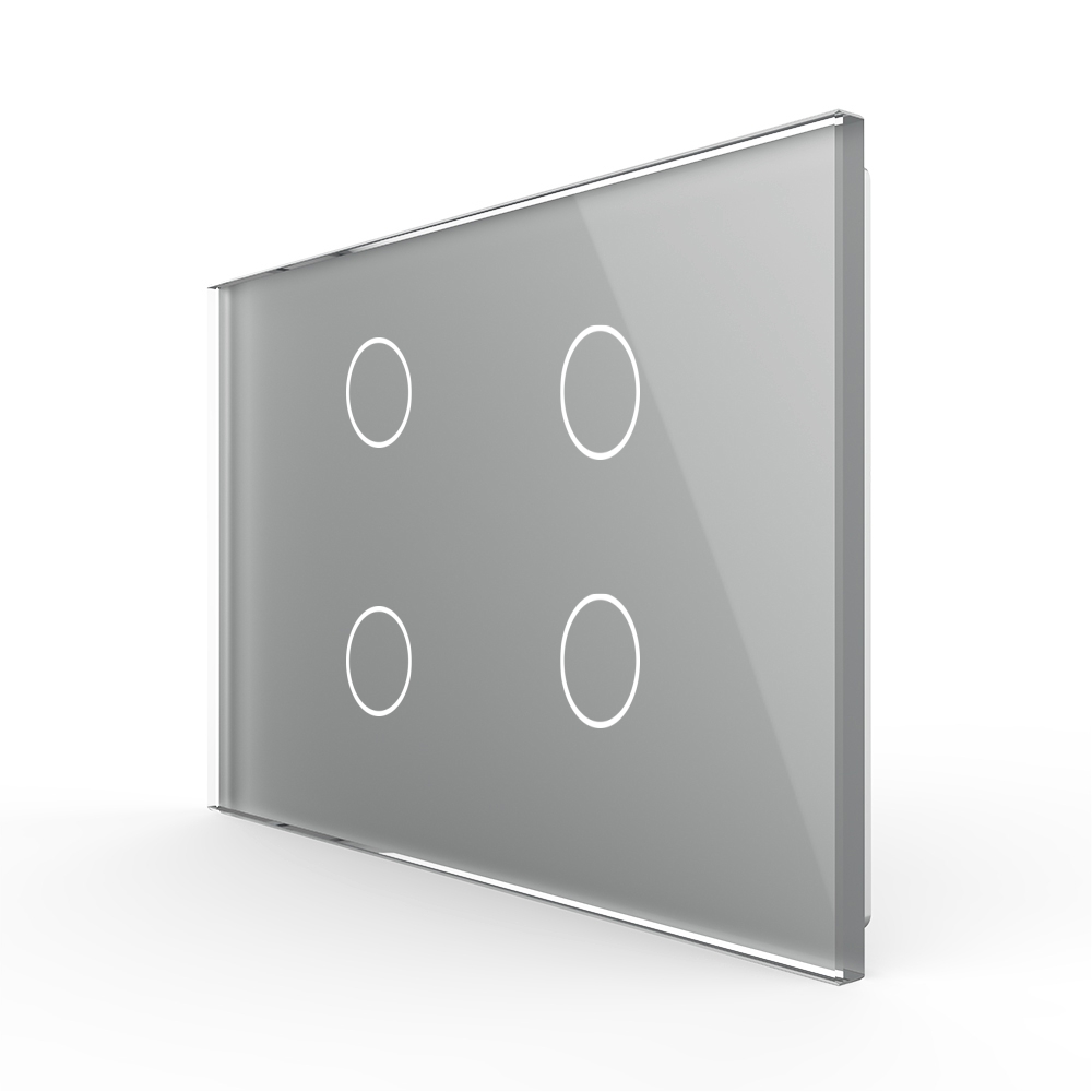 Panou intrerupator cvadruplu cu touch Livolo standard italian, din sticla crystal securizata, termorezistenta, compatibil cu modulele de intrerupator Livolo. Intrerupatoarele Livolo folosesc un senzor tactil cu 100 ms timp de raspuns, similar cu tehnologia folosita la smartphone-uri. Panoul din sticla al intrerupatorului, este din sticla securizata, rezistenta la foc. Ledul rosu/albastru indica statusul on/off al intrerupatorului.