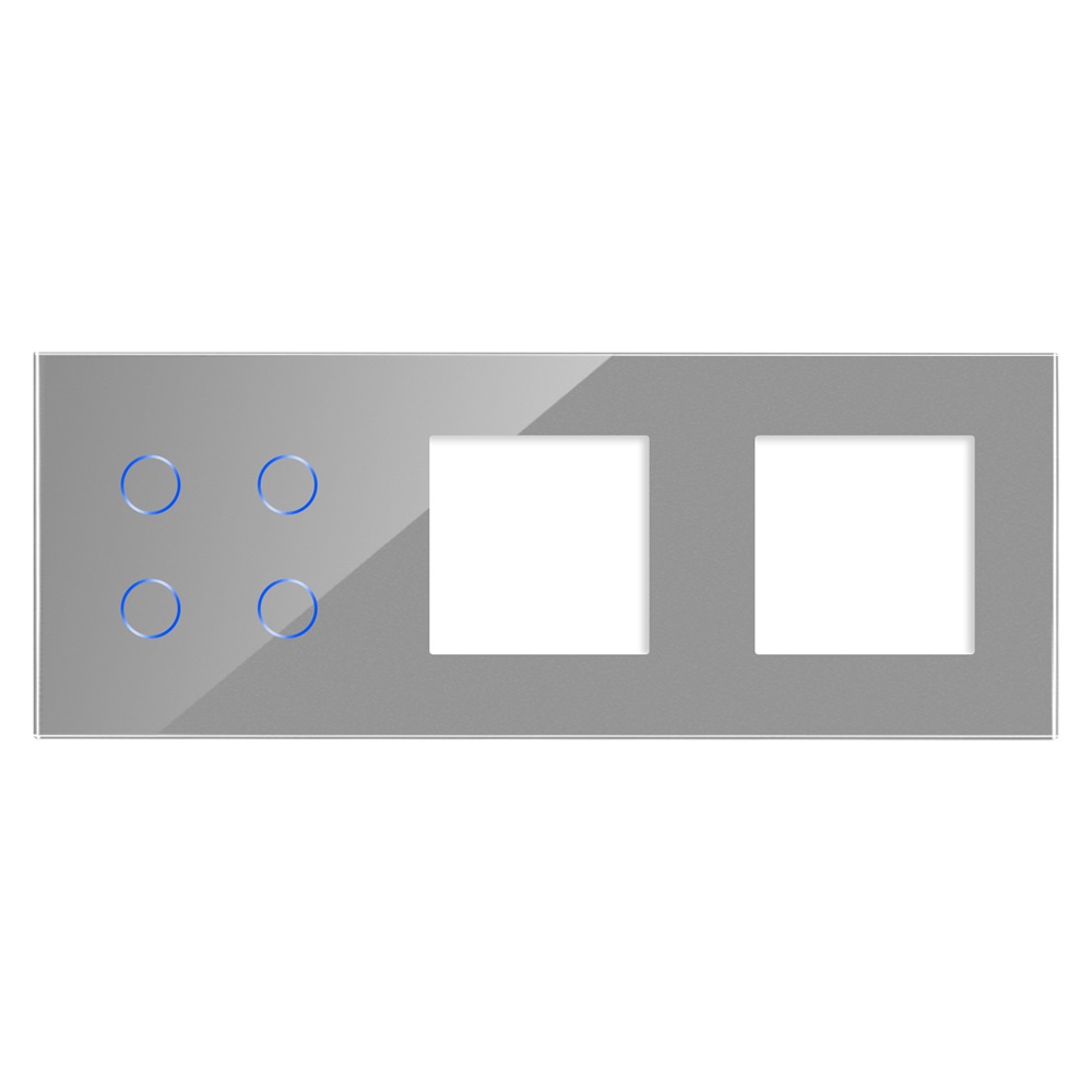 Panou Intrerupator Cvadruplu cu Touch si 2 Prize Simple Din Sticla LUXION