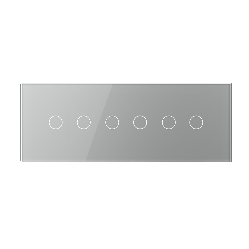 Panou intrerupator dublu + dublu + dublu cu touch Livolo din sticla, standard italian, cu 6/7 module, din sticla crystal securizata, termorezistenta, compatibil doar cu modulele Livolo. Este rezistent la zgarieturi, umezeala, praf si ofera casei tale un plus de eleganta si rafinament.