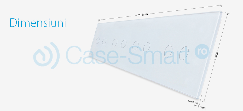 Panou 4 intrerupatoare duble cu touch Livolo din sticla termorezistenta – cu 8 pozitii reprezinta panoul frontal pe care se monteaza intrerupatoarele.