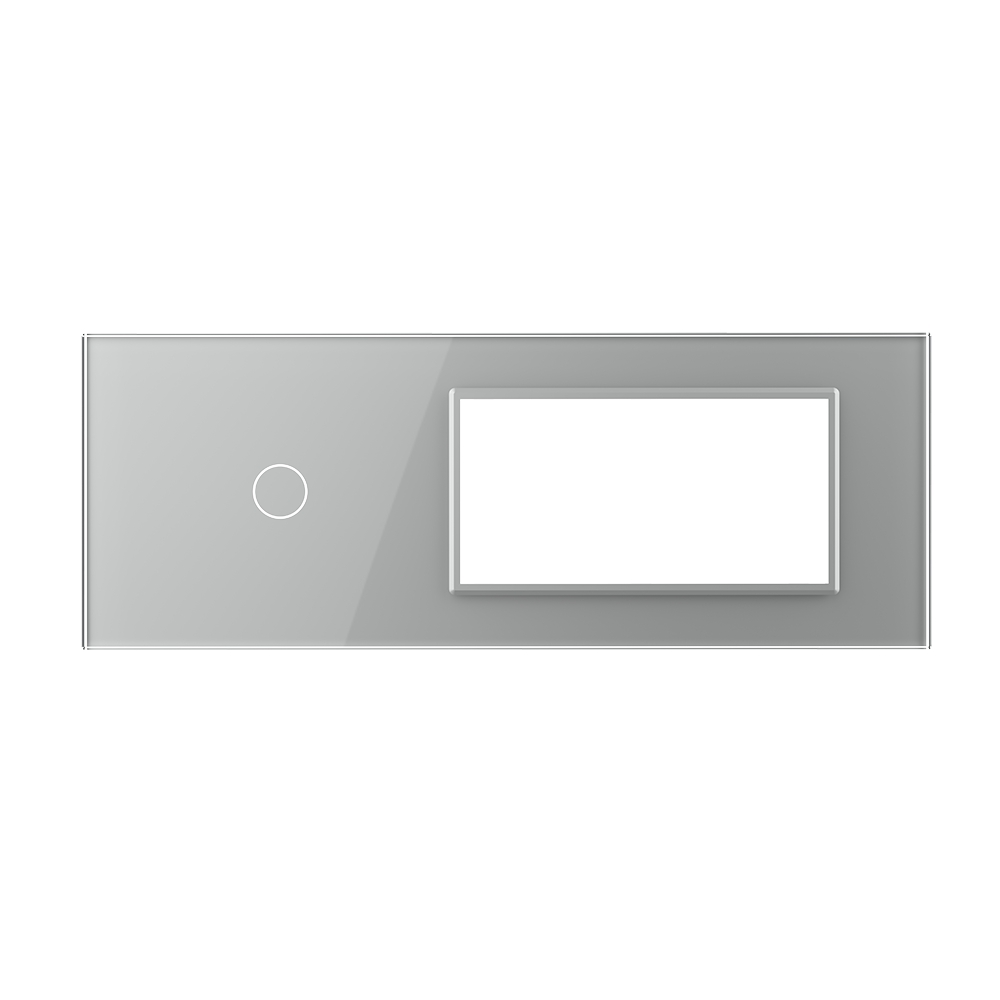 Panou intrerupator cu touch Livolo din sticla, standard Italian, simplu + doua prize, compatibil cu doza modulara de 6/7 module cu distanta dintre suruburi 102 mm. Produs compatibil doar cu modulele Livolo. Este rezistent la zgarieturi, umezeala, praf si ofera casei tale un plus de eleganta si rafinament.