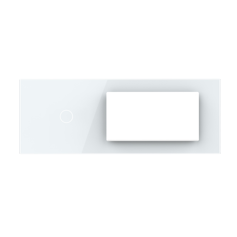 Panou intrerupator cu touch Livolo din sticla, standard Italian, simplu + doua prize, compatibil cu doza modulara de 6/7 module cu distanta dintre suruburi 102 mm. Produs compatibil doar cu modulele Livolo. Este rezistent la zgarieturi, umezeala, praf si ofera casei tale un plus de eleganta si rafinament.