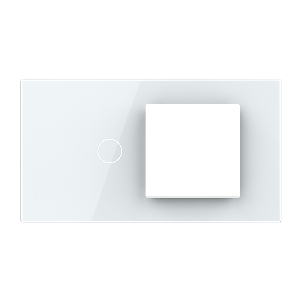 Panou intrerupator cu touch Livolo din sticla, standard italian, simplu + priza cu 4 module, din sticla crystal securizata, termorezistenta, compatibil doar cu modulele Livolo. Este rezistent la zgarieturi, umezeala, praf si ofera casei tale un plus de eleganta si rafinament.