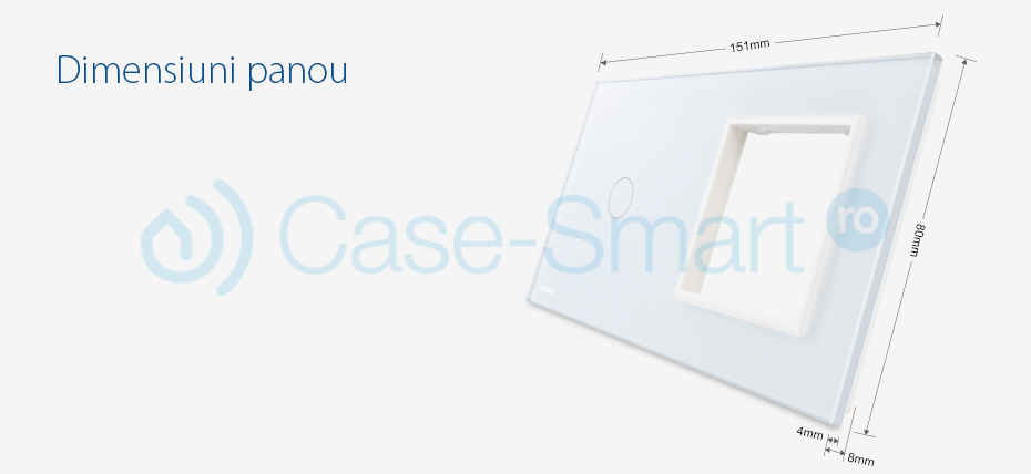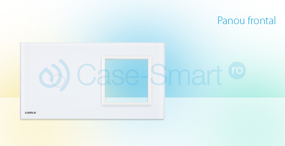 Panou intrerupator simplu cu touch Livolo si priza cu rama din sticla, se poate monta orice intrerupator: cap scara, cu variator, cu timer, wireless.